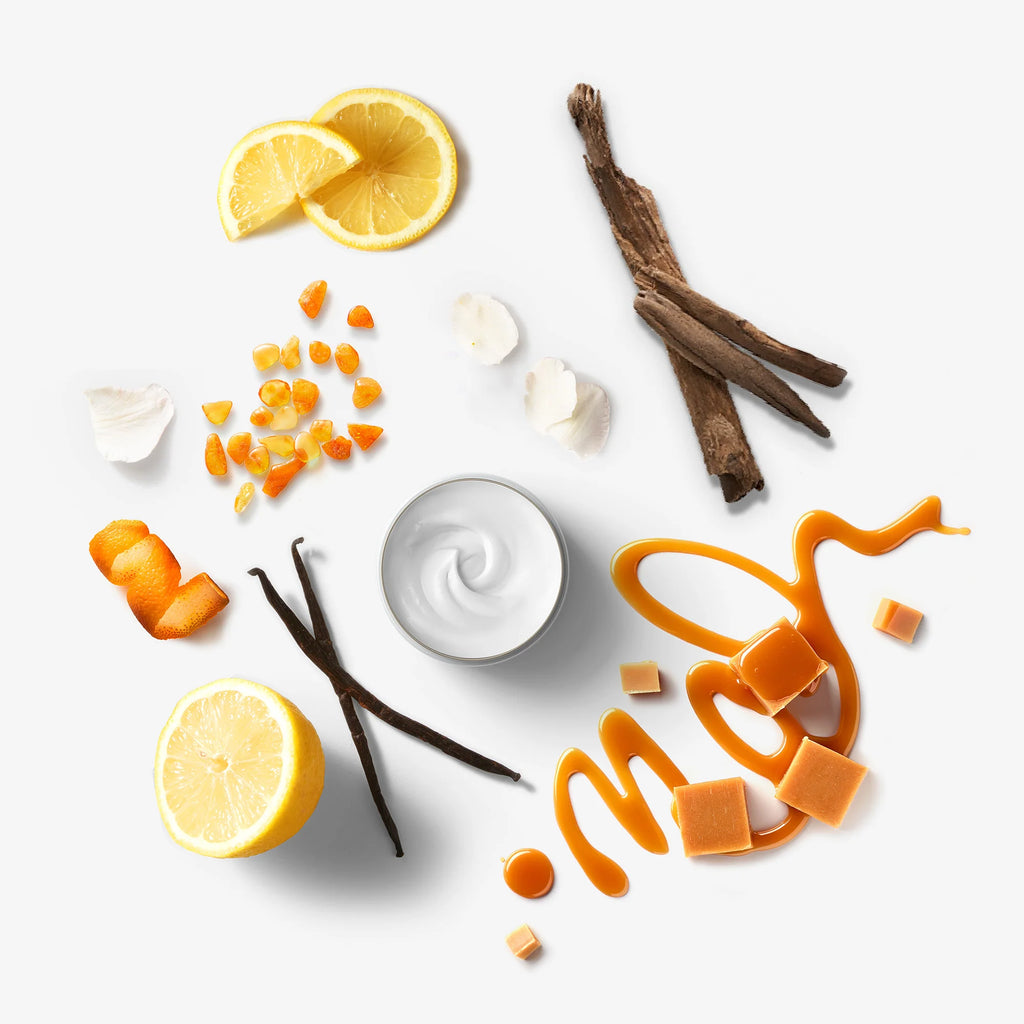 Indulge in the scent that dreams are made of: velvety dark chocolate beans intertwine with caramelized amber and musky allure, while sassy citrus and smooth almond add a playful twist. It's the ultimate recipe for irresistible seduction.