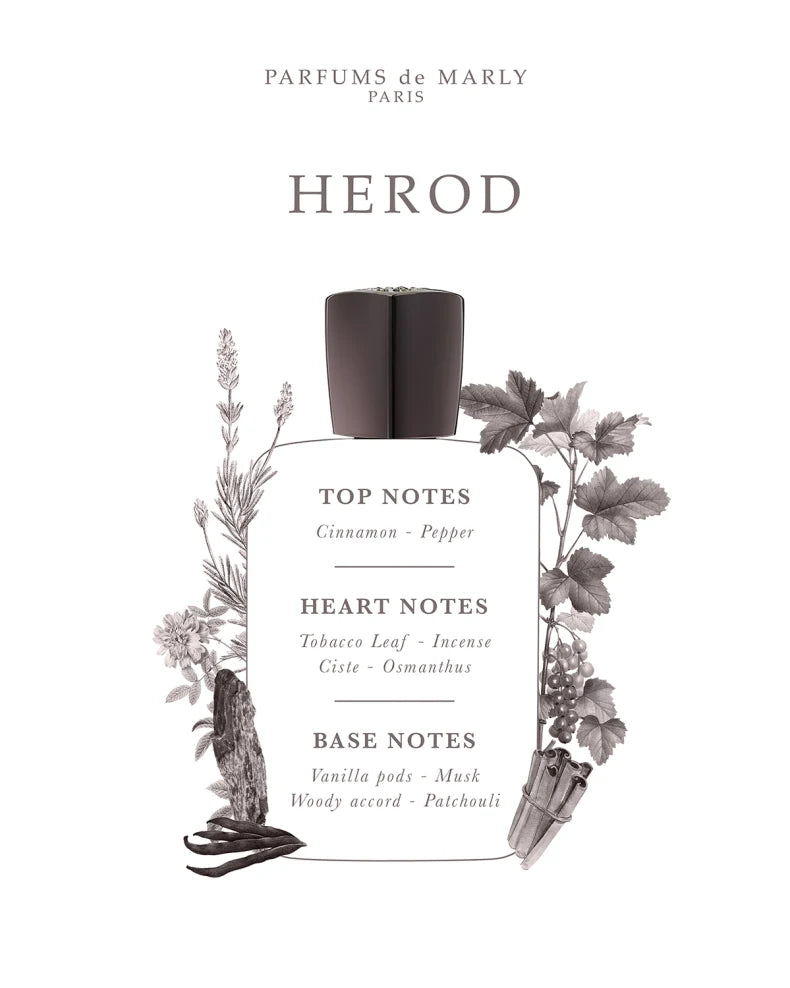 An ode to vanilla, crowned with tonka bean and sublimated with a hint of cinnamon, Herod leaves behind a delicate sillage which is both warm and bold.