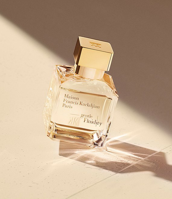In the generous and fully enveloping trail of gentle Fluidity Gold Maison Francis Kurkdjian, you'll find the essence of coriander seeds and an extra dose of musks and vanilla. Like the musks, the coriander seeds' spicy floral notes add a breezy volume and lasting trail. The vanilla accord brings tasty and reassuring back notes underscored by the amber wood which sketches a bright and radiant silhouette. gentle Fluidity Gold eau de parfum diffuses comfortable notes, a reassuring musky ambery scent.