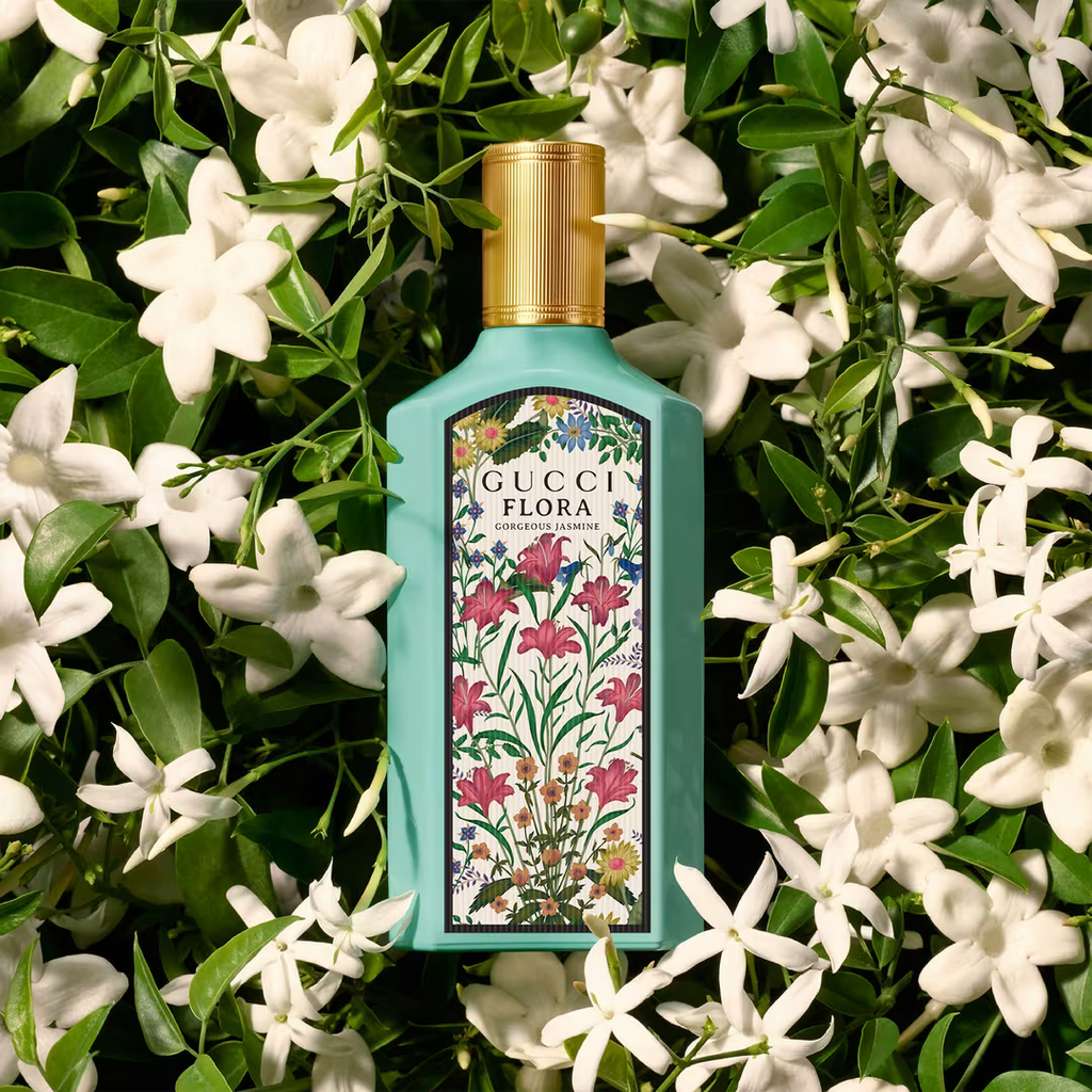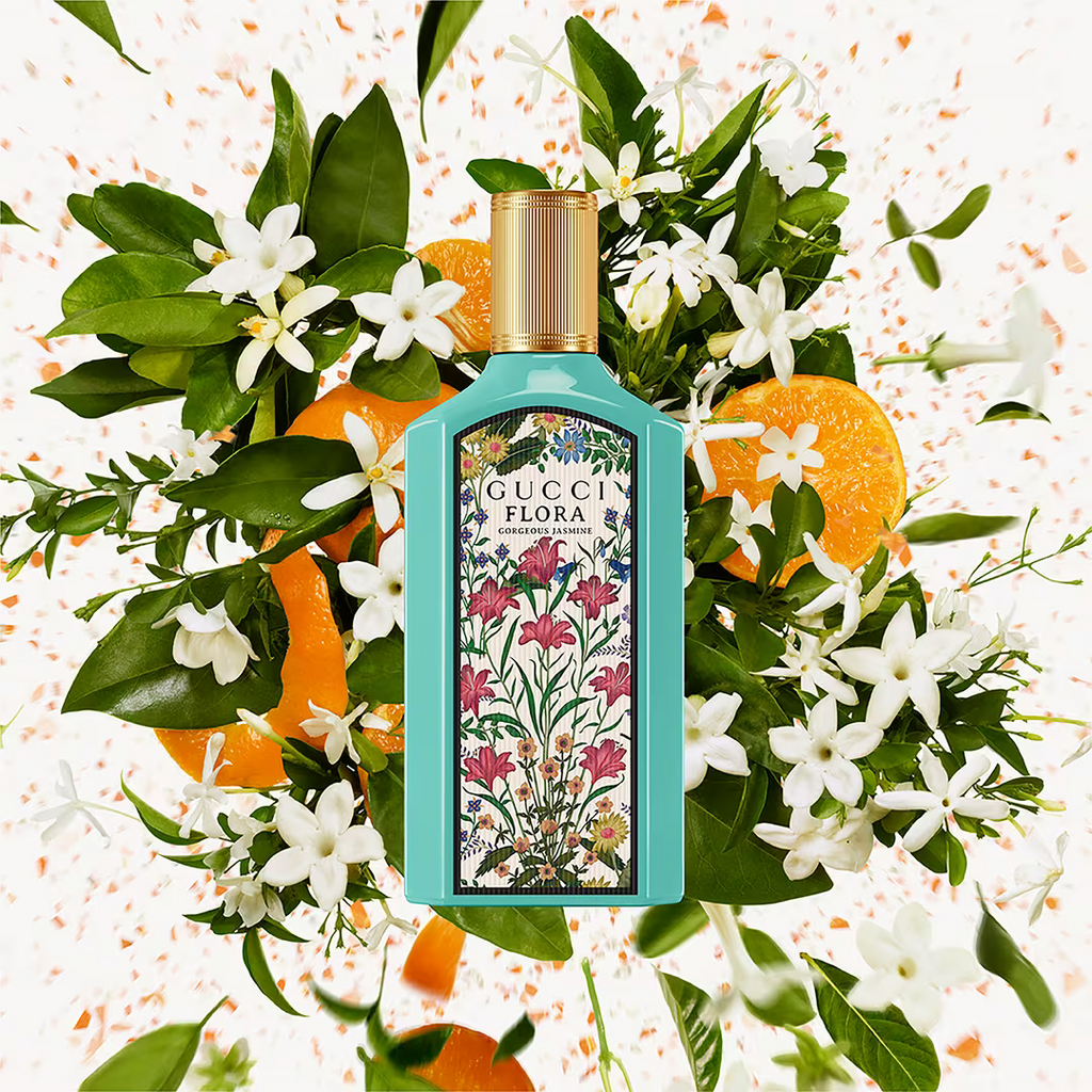 Gucci Flora Gorgeous Jasmine Eau de Parfum bursts with a radiant composition led by Grandiflorum Jasmine. Tender wreaths of noble Jasmine are transformed through extraction into the heart and spirit of Gucci Flora Gorgeous Jasmine, resulting in an enlightened expression of this precious flower. Blended with base notes of Sandalwood and Benzoin, its sensual notes create a skin imprint unique to the wearer. Its energy of inner joy is further lifted with notes of Mandarine Essence and Magnolia Accord, which infuse the scent with a joyful feeling. The House’s distinctive Flora pattern seals the design with a magical touch, fortifying Gucci Flora Gorgeous Jasmine as an object of inspiration.