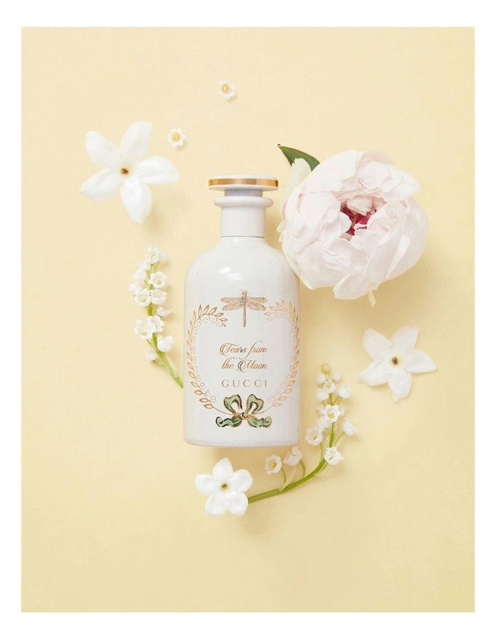 Tears From the Moon echoes the free and joyful spirit of a dragonfly. The scent is built around a dewy floral bouquet of White Peony, a symbol of richness and honor, the fresh and animalic Lily of the Valley, and the radiant Stephanotis—unlocking the secret of this elegant spring sillage.