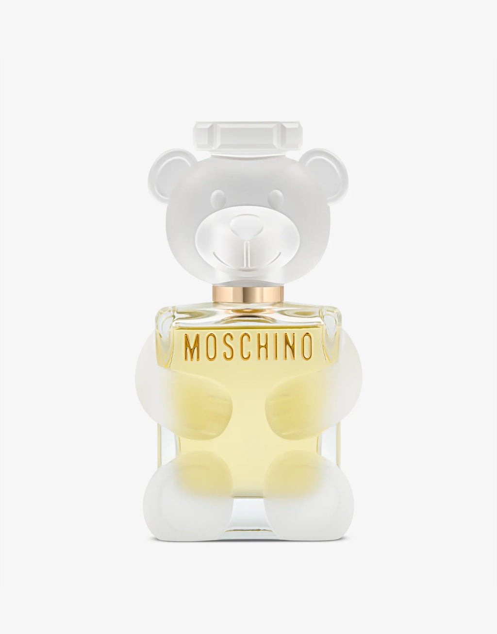 TOY 2, THE SECOND EDITION OF THE ICONIC MOSCHINO TEDDY BEAR FRAGRANCE, UNVEILS A FRESH ESSENCE, BLENDING GRANNY SMITH APPLE, MANDARIN AND MAGNOLIA WITH A FLORAL HEART OF PEONY AND JASMINE. MUSK, SANDALWOOD, AND AMBERWOOD ADD WARM DEPTH.