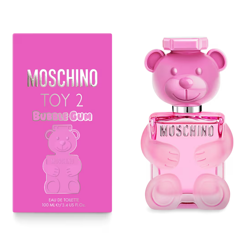 A FRAGRANCE FOR PINK LOVERS THAT RELEASES VIVACIOUS BUBBLE GUM NOTES. CANDIED CITRUS BLENDS WITH SUCCULENT PEACH AND SPICES, DIVING INTO A REFINED COCKTAIL OF WOODS AND MUSK. TOY 2 BUBBLE GUM ADDS POP VIBES TO THE PINK NARRATIVE, ALL WRAPPED UP IN THE MOSCHINO TEDDY BEAR BOTTLE.